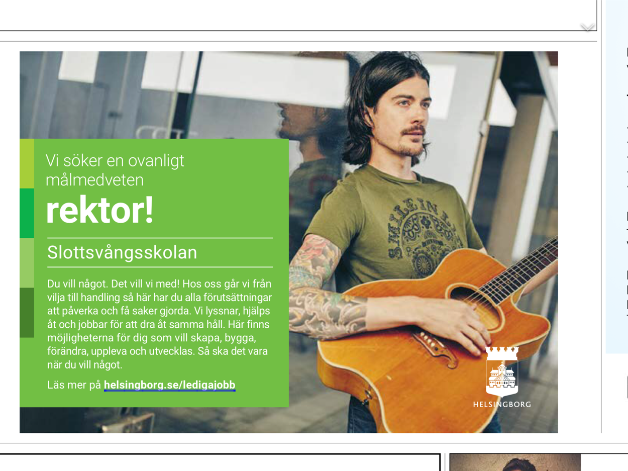 Män i förskolan som symboler för något djärvt? Posted on June 4, 2016 by Editor Jag gillar annonsen. Och Simon. Bra tänkt Helsingborg! Tweet Click to email a link to a friend (Opens in new window) Email MoreLike Loading...