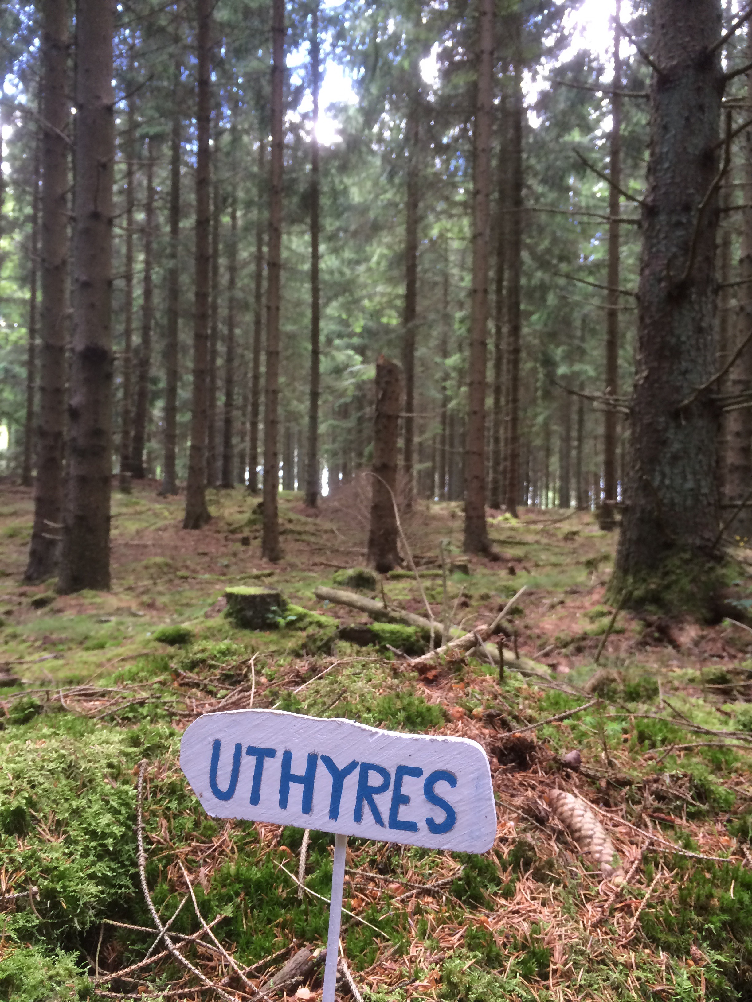 En bit in i skogen möter vi Peter Tillbergs skulptur Den onämnbare.