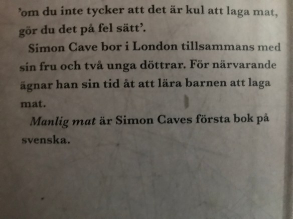 Kokböcker som genre skapar också sina modelläsare, – vem kan tänkas läsa om ” manlig mat”? Kanske har jag vissa fördomar men orginalet utkom väl i England? Samlar själv på kokböcker och några favoriter är Hirams, – de är illustrerade med svarta tuschteckningar ( inga insmickrande bilder!) språket är trivsamt småputtrigt ( blir på gott humör av det) men jag använder aldrig recepten.