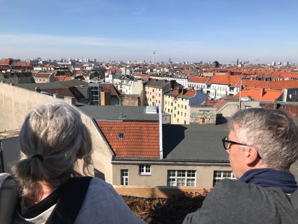 Vi utforskar Kreutzberg och hamnar på restaurang Freischwimmer. Det är bröllop och gästerna skickar upp kuvert med önskningar.