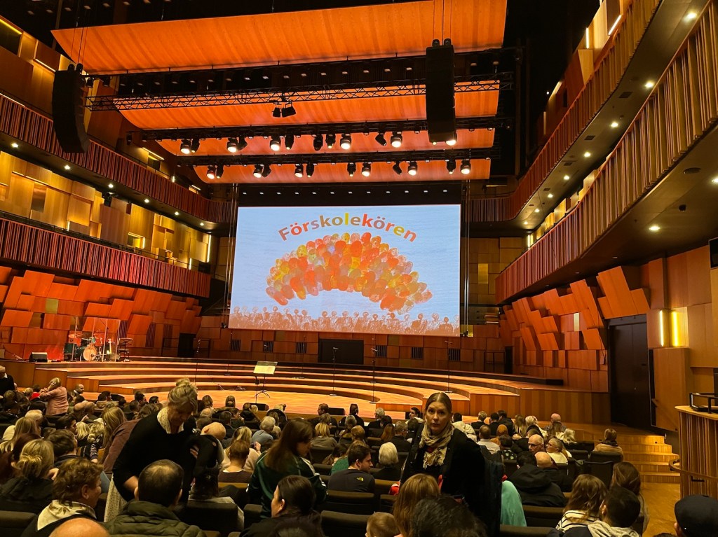 Har varit på en fantastisk konsert. Kul när allt stämmer – barnen, publiken, låtarna, bandet, lokalen och körledaren!