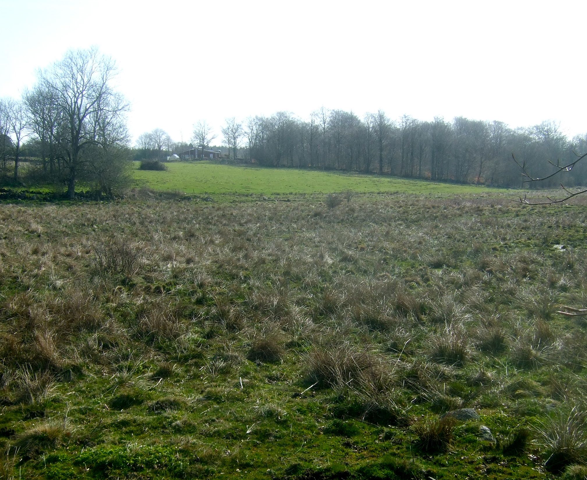 Jag brukar fotograferar kor som betar i hagen. De har inte blivit utsläppta än. Bortom våtmarken och den uppbökade gröna backen skymtar vårt hus – så som korna kanske ser det!
