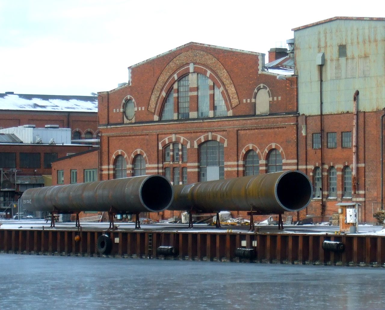 På Kockumsområdet skapas den nya mediemetropolen. Här håller SVT på att flytta in i den gamla ubåtshallen. Utanför ligger torn till vindkraftverk. Malmö vill gärna förena gammalt och nytt, men industriell produktion ingår inte i stadsplanen.
