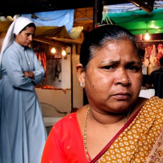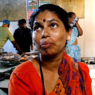 Jag är färgblind och har ganska vaga föreställningar om skillnaderna mellan de tre färgerna. Därför chansar jag brett och hoppas att någon färg på någon bild är i närheten av rätt. De flesta kvinnorna är fiskhandlerskor i Goa. Jag tror att orange är någon form av tecken för någonting…