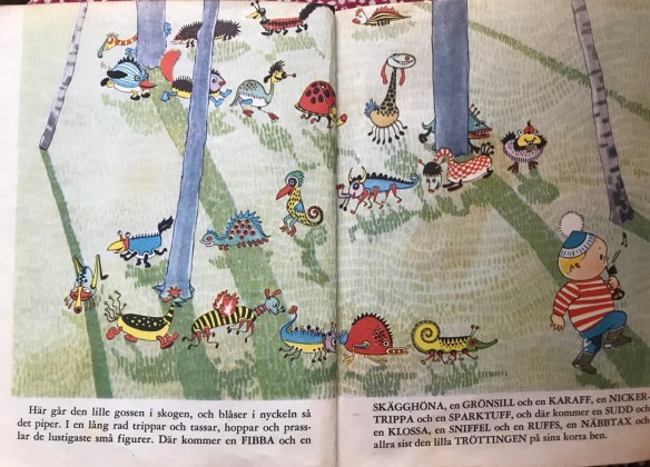 I jul har jag levt nära våra två barnbarn. Det är fantastiskt att se dem utvecklas och jag vill verkligen inte vara pedagog i den här relationen. Samtidigt finns det något kittlande i att pröva vilka böcker som känns bra att läsa. Jag hittar den här skatten från min barndom och inser att de här bilderna finns i mitt kroppsminne.