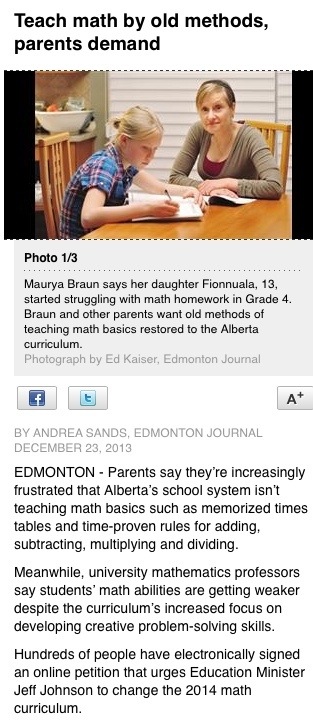 Alberta Education information for parents highlights these differences between how math was taught in the past and how it is taught today: