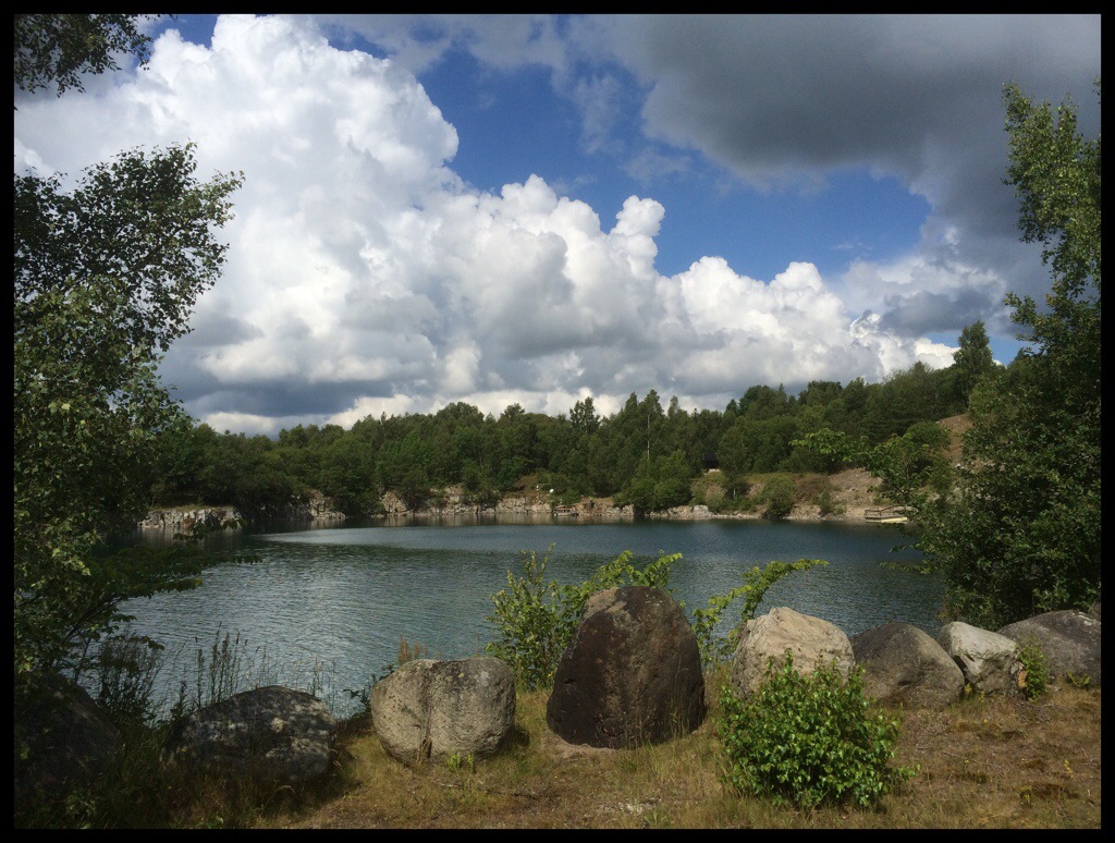 Turen går söderut och jag passerar Listarum. Grusvägen går genom skogen och jag passerar ett övergivet vattenfyllt stenbrott med skarpa förbudsskyltar. Badförbud – överträdelser beivras vid laga ansvar. Jag känner lockelsen men inser att det är allvar. Taggtråden övertygar mig om att det finns lämpligare badplatser.