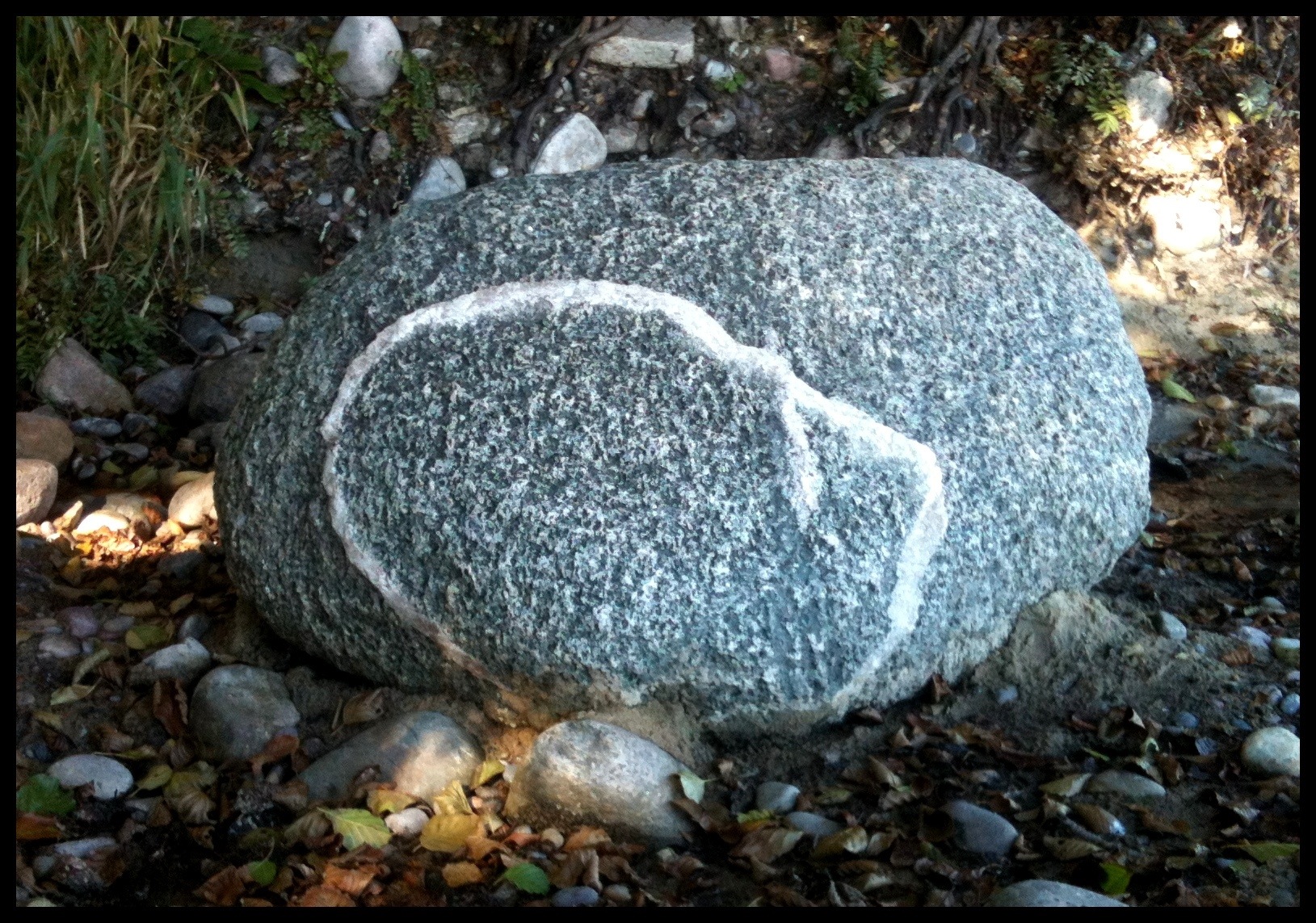 Klippblocket med den mystiska vita randen vid Krivarbäcken betyder något. Ett budskap från tidi geologisk tidsålder?