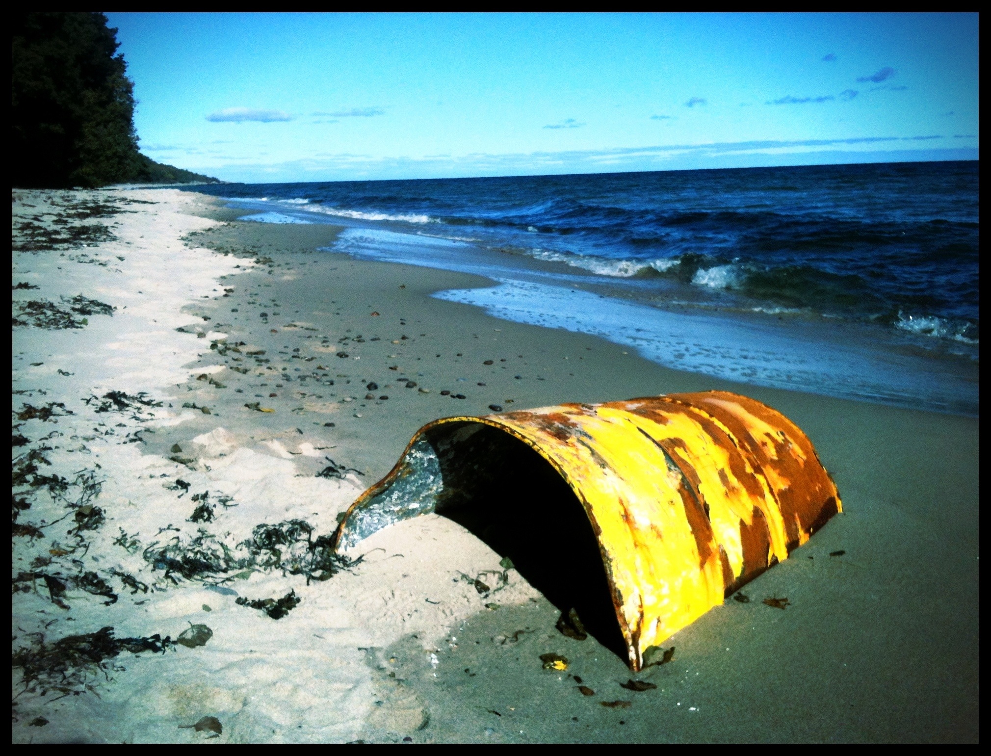 Den rostiga plåttunnan på stranden nedanför Stenshuvud känns mer banal – de här påminnelserna om konflikten mellan människa och natur är välbekanta.