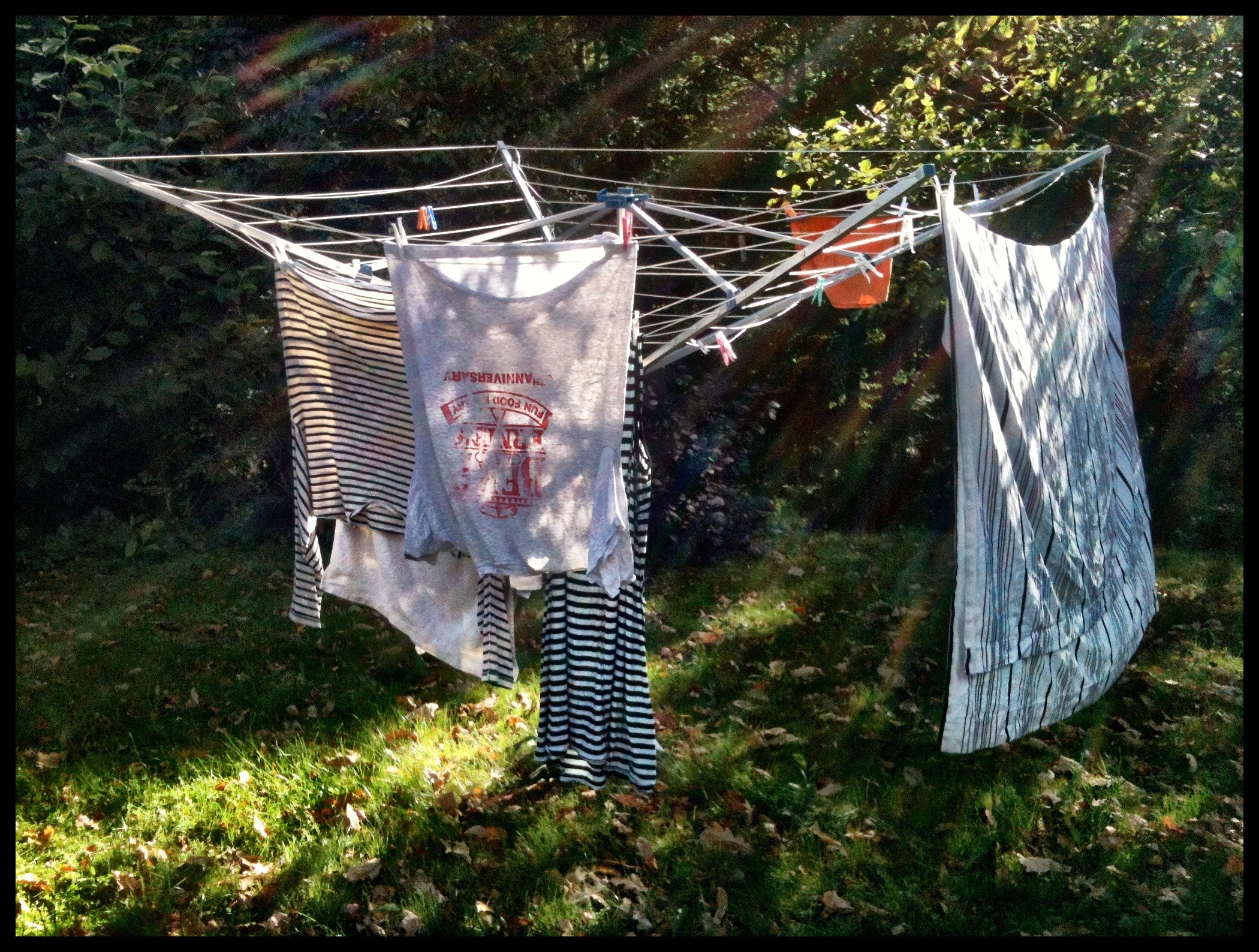 Hemma igen hänger vi årets sista utomhustorkande tvätt. Det är en djupt symbolisk handling.