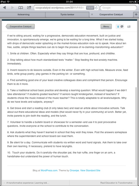 Jag är lite förbluffad över med vilken iver amerikanska skoldebattörer producera listor över allting. Ofta handlar det om käcka råd som i sin infantila förenkling lämnar en besk eftersmak . Samtidigt gillar jag tanken på att bryta ner komplexa problem till något hanterbart.