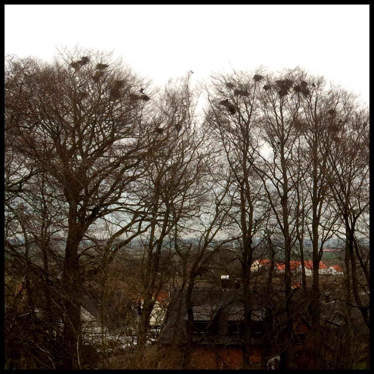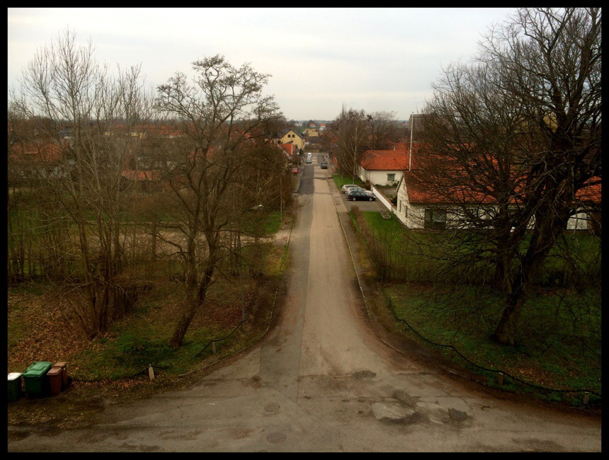 Bakom träden skymtar Nybo gård. Nu till salu.