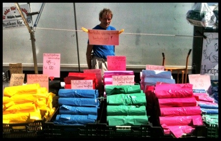 Som vanligt säljer vi schalar och filtar till förmån för vår indiska fadderfamilj. Jag blir fort rastlös och går en runda för att kolla upp konkurrenterna.