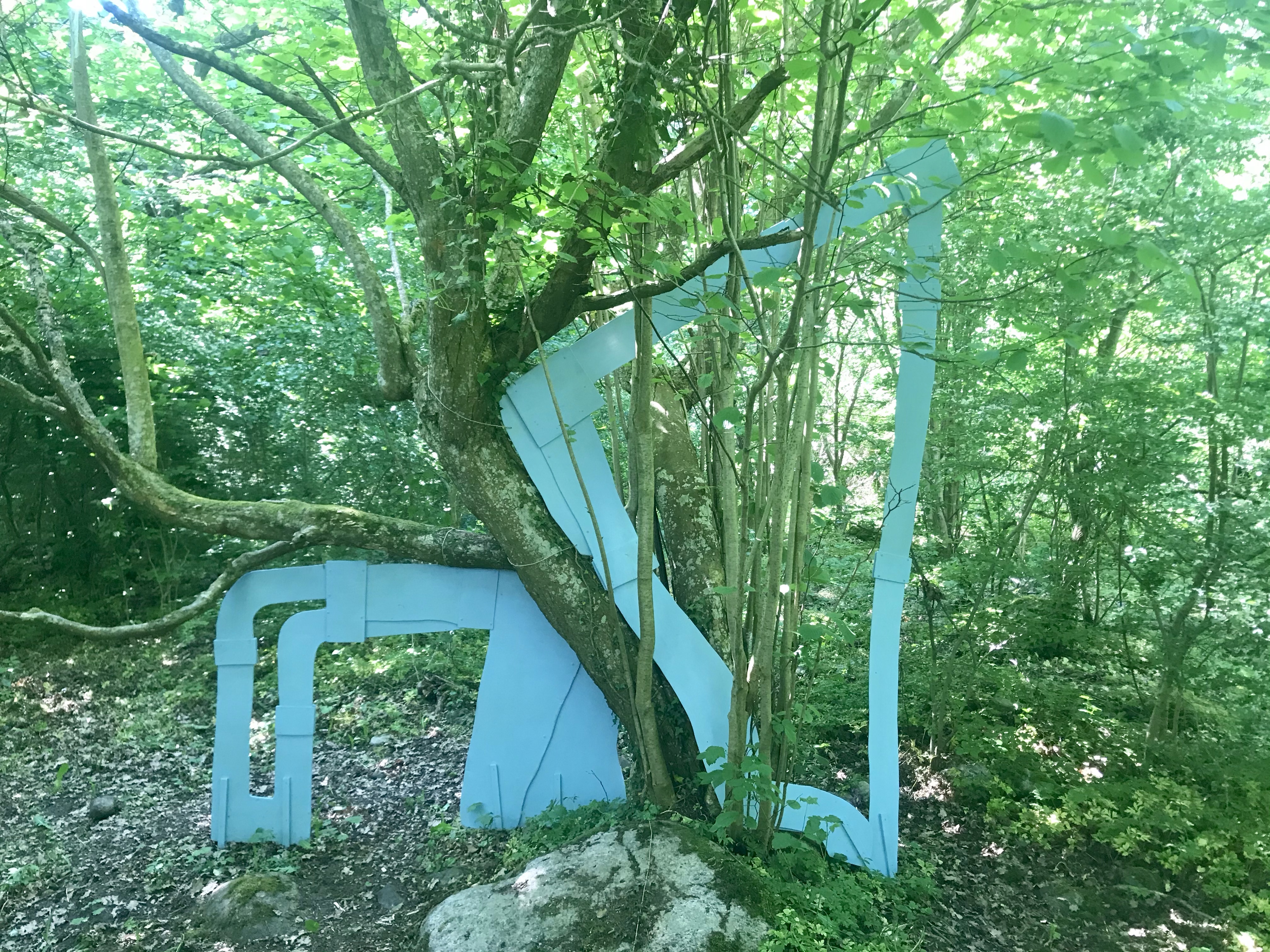 Vi besöker konstutställning vid Tjörnedala och tycker det är en ojämn match. Det är inget fel på konsten.