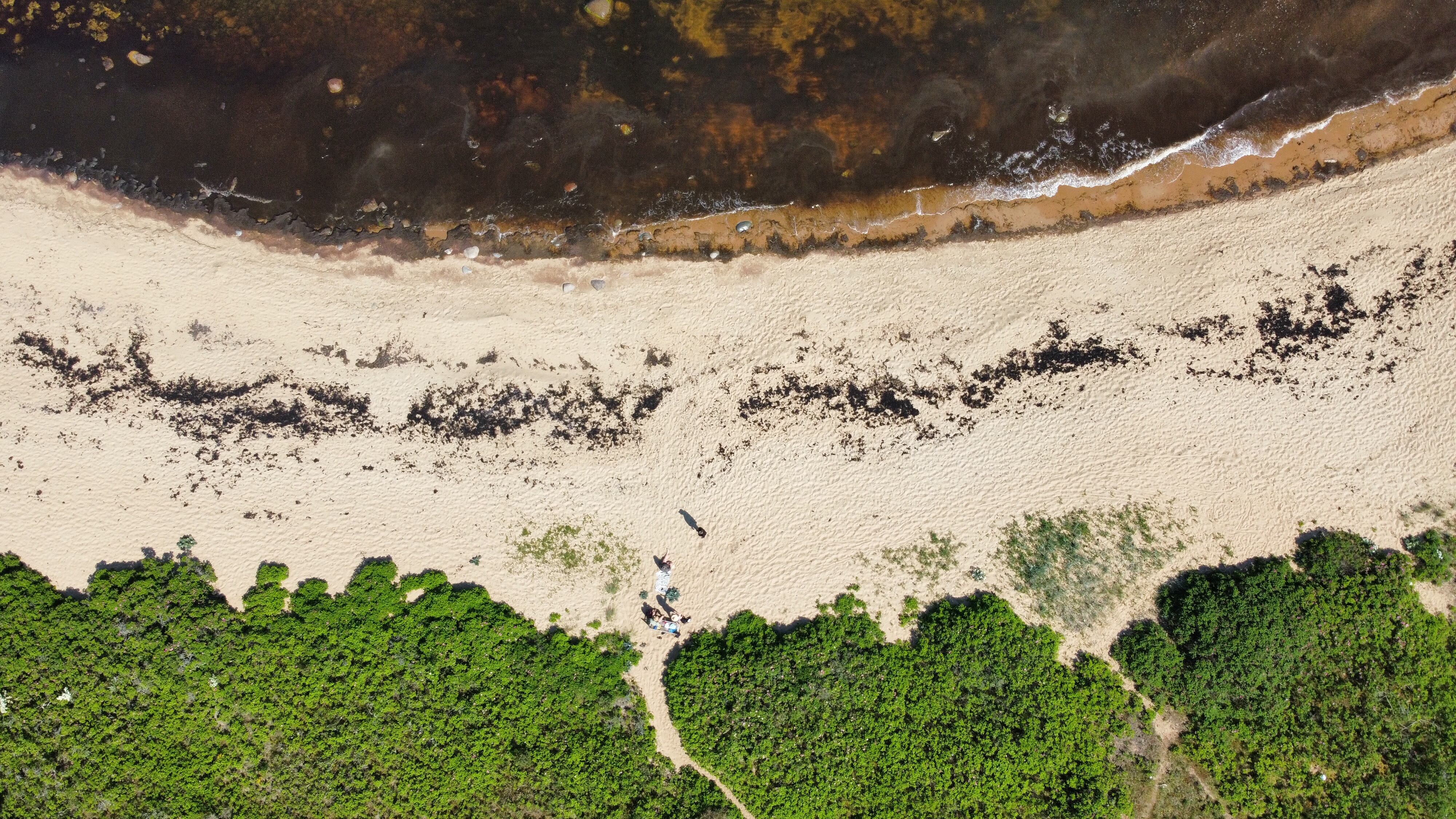 Vi stranden spanar en fågelskådare. Den stora kikaren är inte till stor hjälp.