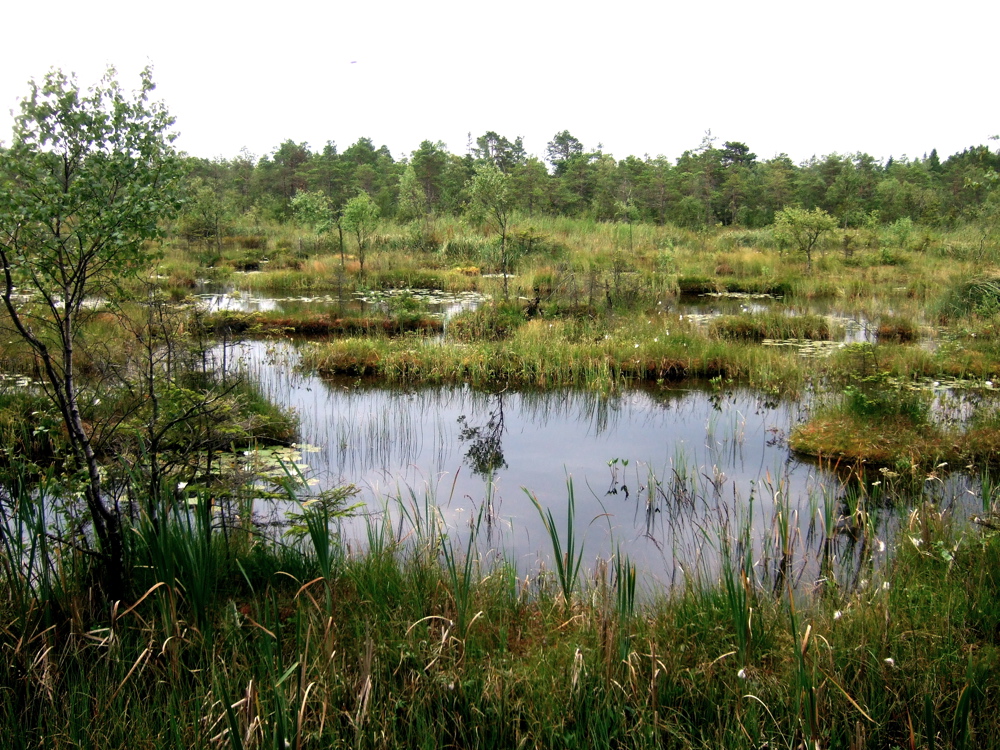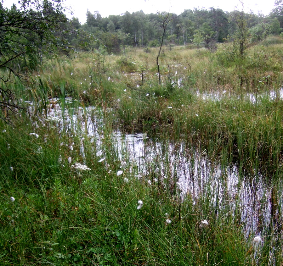En bit in i skogen finns rester från en torvmosse och jag följer spåren.