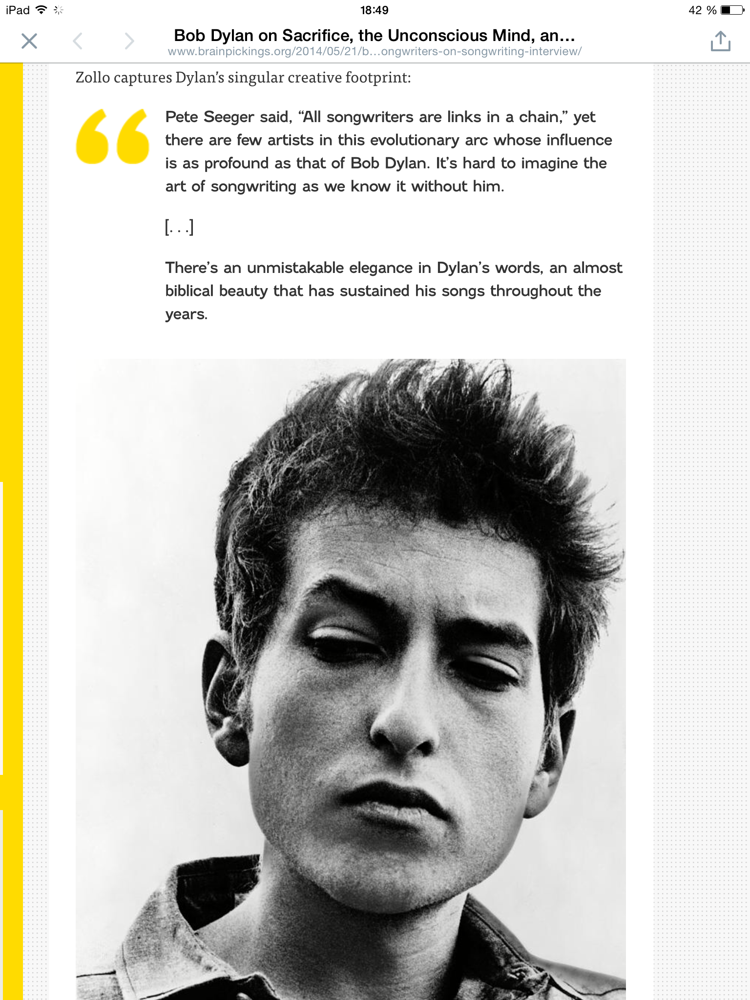 When Zollo asks Dylan whether he sees himself the way Van Morrison famously characterized him, Dylan replies: