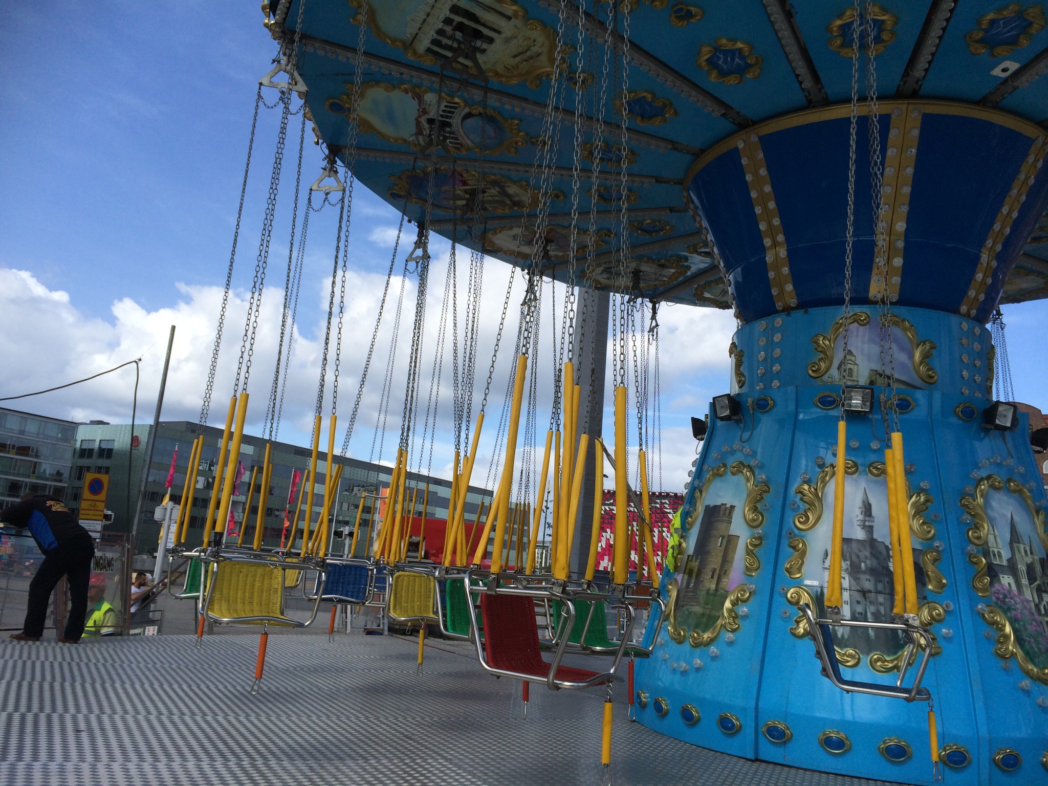 Studier som yrsel. Jag tycker om att titta på folk som åker slänggungor. Farten och vinden berusar – samtidigt hotar faran. Hur hamnade jag här?