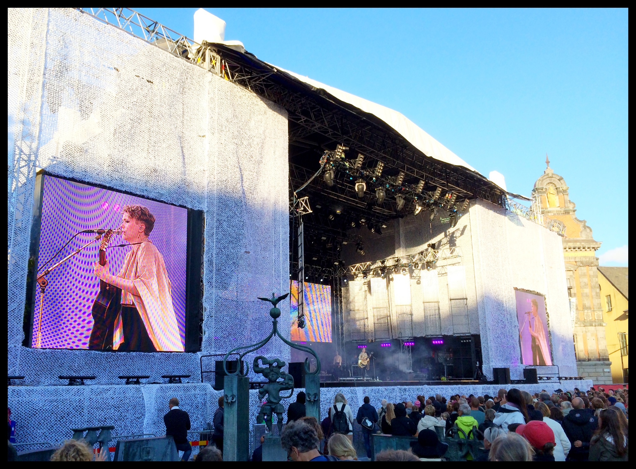 På Stortorget blåser det och Ane Bruns musik fladdrar omkring.
