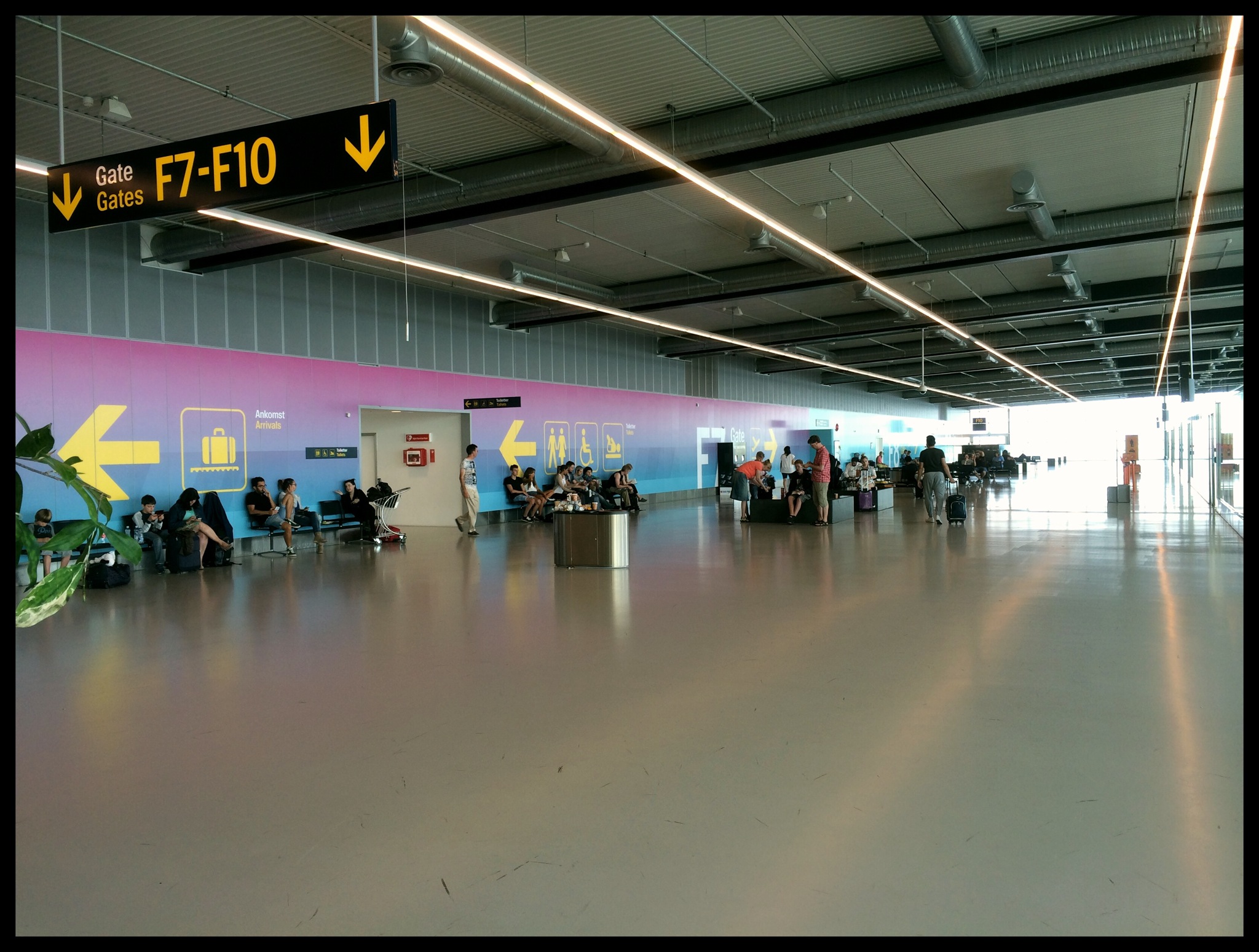 Längst ut i F-terminalen har Easyjet sina avgångar. Vårt plan är försenat. Någon har slarvat bort startmotorn.