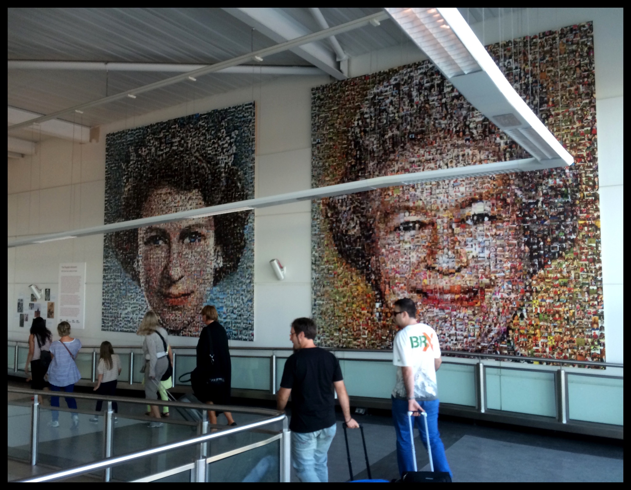 På Gatwick har de skapat porträtt av drottningen genom att sätta samman många små bilder på folket.