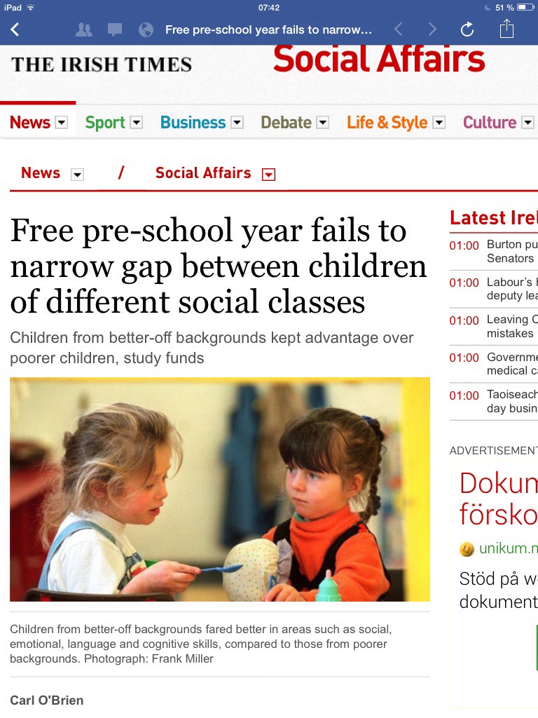 Men det är inte säkert att förskolan är den stora utjämnaren av sociala skillnader. Begreppet “tidig intervention” används tydligen internationellt. Det är fortfarande lika obehagligt.