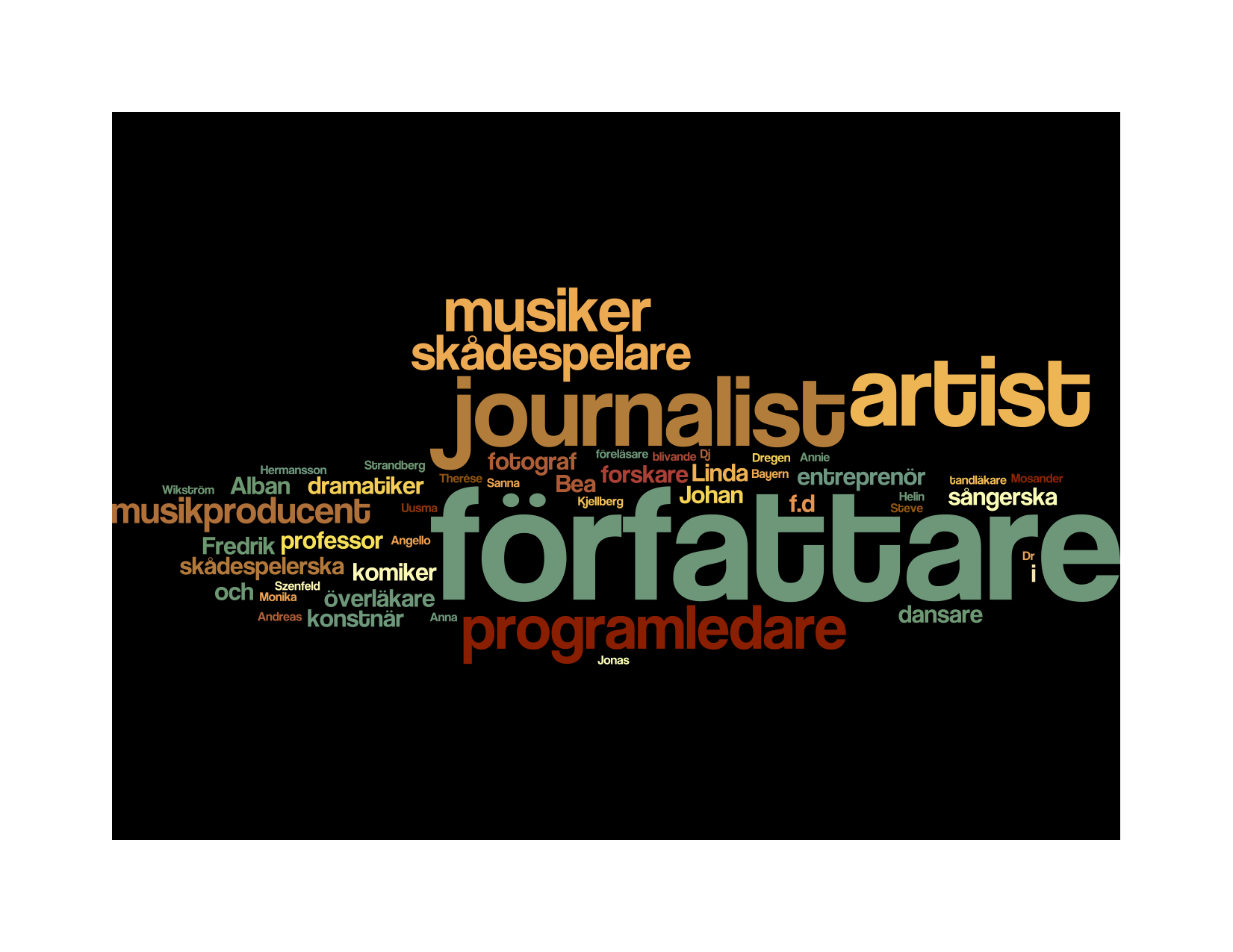 Den årliga besvikelsen över att sommarpratarna rekryteras från en så begränsad krets. Personerna presenteras som författare, programledare, journalist, artist, musiker, skådespelare/skådespelerska, komiker, sångerska, dramatiker, dansare, konstnär, fotograf och musikproducent. Någon professor, överläkare och entreprenör har lyckats smyga sig in i djungeln av mediepersonligheter.