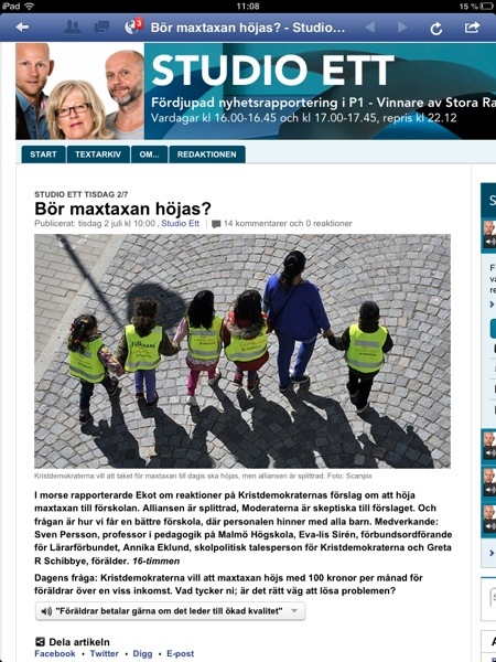 Jag lyssnar på Studio Ett om KD:s utspel kring förskola, gruppstorlek och maxtaxa.