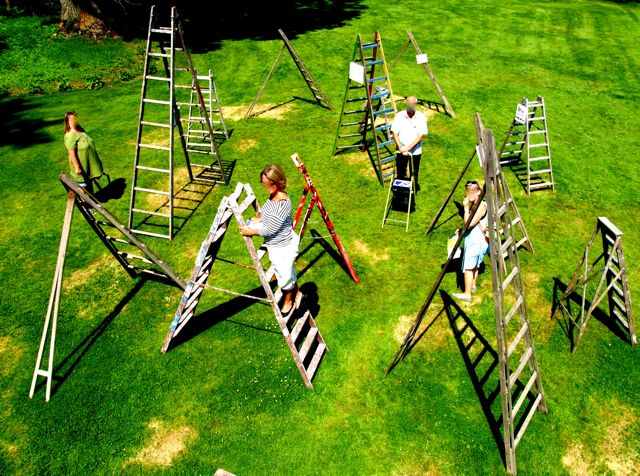 Jag kliver upp på en av stegarna som ingår i Yoko Onos andra installation. Plötsligt ser världen annorlunda ut. Jag är en aning närmare himlen.